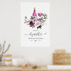 Affiche de bienvenue pour la réception de mariage bohème violette et prune avec calligraphie élégante, peinte à la main à l'aquarelle.