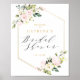 Signe de bienvenue à la réception de mariage florale géométrique dorée. Le design présente un cadre géométrique doré orné de fleurs roses, blanches, d'eucalyptus et d'autres feuillages. L'en-tête se démarque avec une typographie calligraphique élégante et raffinée. Personnalisez en utilisant les champs de modèle fournis. Si vous avez besoin d'aide, veuillez nous contacter en utilisant le bouton de contact ci-dessous.