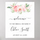 Affiche Bienvenue à la réception de mariage florale rose d