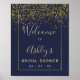 Bienvenue à la soirée de mariage chic or confettis bleu marine