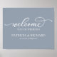Bienvenue À Notre Mariage Chic Script Dusty Panneau Bleu