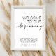 Présentez cette affiche de style minimaliste "Bienvenue à notre début" pour faire votre propre signalétique de bienvenue mariage si vous avez une mariage simple, classe et sobre. Les noms et la date ci-dessous peuvent être modifiés
