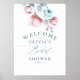 Panneau de bienvenue de douche de mariage avec des fleurs bleues poussiéreuses et roses