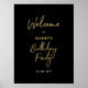 Accueillez vos invités avec ce poster de bienvenue d'anniversaire moderne. Ce panneau présente un simple script "Bienvenue à la fête d'anniversaire" dans un thème de couleur or et noir. Vous pouvez personnaliser le nom et la date. Les invitations et les fournitures de fête assorties sont disponibles dans ma boutique BaraBomDesign.