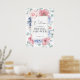 Panneau de bienvenue de réception de mariage avec des fleurs roses et bleues poussiéreuses
