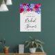 Des fleurs d'hortensia bleu vif, des roses violettes profondes et des fleurs tropicales rose magenta vif créent un arrangement floral vibrant. La réception de mariage est écrite en calligraphie moderne. Ce panneau de bienvenue fait partie de la collection Rose, Violet et Bleu Audacieux.