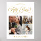 Affiche de bienvenue pour un 50e anniversaire de mariage avec un script calligraphique tourbillonnant de couleur or et un collage photo minimaliste avec trois photos de différentes tailles où vous pouvez donner à vos invités un aperçu de vos merveilleux cinquante ans ensemble !