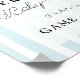 Bienvenue à vos invités en style avec notre Poster de bienvenue de Baby shower de tennis bleu Preppy Baby! Cette enseigne de charme est ornée d'un arrière - plan rayé bleu clair et blanc, créant une atmosphère chaleureuse et accueillante pour votre célébration. L'esthétique chic et préppy est parfaitement complétée par un motif de tennis ludique, idéal pour les parents amateurs de tennis. Une écriture élégante et une typographie sophistiquée apportent une touche de classe, tandis que chaque détail peut être personnalisé pour correspondre à votre baby shower unique sur le thème du tennis. Que vous souhaitiez inclure le nom des parents, la date de l’événement ou un message spécial, ce signe est entièrement personnalisable pour rendre votre événement unique. Caractéristiques : Poudre pastel bleu et blanc rayé arrière - plan pour un look doux et preppy Motif de tennis chic pour une touche sportive mais élégante Écriture manuscrite et typographie moderne Texte entièrement personnalisable pour convenir à vos détails de l'événement Parfait pour accueillir les invités à votre baby shower sur le thème du tennis Donnez le ton d'une fête mémorable avec ce panneau de bienvenue délicieux, où le sport rencontre doux de la manière la plus charmant! Conçu par Simple Desert Designs Studio. Message pour une plus grande coordination de la décoration de baby shower et des faveurs ou tout produit customisé.