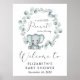 Affiche Bienvenue au Baby shower Eléphant Cute Eucalyptus
