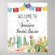 Accueillez vos invités avec un panneau personnalisé adorable. Encadrez le panneau et affichez-le sur une table près de l'entrée ou montez l'affiche sur mousse et affichez-la à l'extérieur sur un chevalet. Le design présente des succulentes aquarelles et des fleurs du désert avec des banderoles de fiesta colorées et festives.