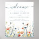 Cette conception présente une bordure de fleurs sauvages vibrantes dans des tons de rouge, jaune, vert, sarcelle et bleu. Parfait pour les mariages décontractés d'été.