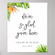 Panneau de bienvenue de mariage à feuillage botanique d'île tropicale.