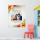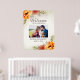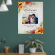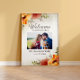 Élégante affiche de bienvenue florale aquarelle orange brûlé pour votre mariage d'automne. Ce panneau est personnalisé avec une photo de fiançailles spéciale et le texte "Bienvenue à notre mariage". Le nom de la mariée et du marié ainsi que leur date de mariage sont imprimés en bas.