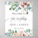 Conçu pour se coordonner avec notre collection de mariage Cherise, ce panneau de bienvenue élégant présente de magnifiques pavots rose pâle à l'aquarelle et du feuillage d'eucalyptus argenté.