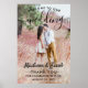 Accueillez les invités de votre mariage à votre cérémonie ou réception avec une élégante affiche personnalisée sur mesure de 60x90 cm. L'image et tout le texte sont faciles à personnaliser. (CONSEIL DE PLACEMENT DE L'IMAGE : un moyen simple de centrer une photo exactement comme vous le souhaitez est de la rogner avant de la télécharger sur le site Web de Zazzle.) Le design moderne minimaliste noir et blanc présente une image de votre choix, une calligraphie élégante de style manuscrit chic, une typographie vintage élégante et des messages personnalisables qui indiquent "bienvenue dans notre pour toujours heureux" et "merci de célébrer avec nous". Ce panneau de mariage est un moyen élégant de partager une photo de fiançailles tout en ajoutant une touche personnalisée à la décoration de votre journée spéciale. Félicitations aux mariés ! La photo d'exemple est