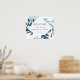 Bienvenue dans votre mariage avec notre affiche d'hiver Azure, avec une bordure géométrique de verdure bleu glace d'aquarelle, de feuillage et de feuilles botaniques, avec "bienvenue à notre mariage", vos noms, et date mariage dans un mélange chic de serif moderne et de caractères italiques.