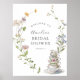 Affiche de bienvenue Fête des mariées avec une pile de tasses blanches avec des fleurs. Customisez avec vos informations pour que la mariée soit mariée. Cliquez sur "cliquer pour customiser plus loin" pour modifier le style, la taille ou la couleur de la police.