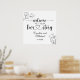 Une affiche moderne et élégante en ligne florale noire et blanche "Welcome" pour votre Big Day !