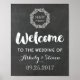 affiche mariage de bienvenue en motif de tableau noir rustique avec illustration vintage de la couronne et texte personnalisé et monogramme de style lettré à la main.