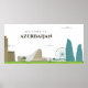 Ville paysage de l'Azerbaïdjan avec célèbre bâtiment monument d'accueil à l'Azerbaïdjan Voyage de vacances Monde Asie, collection asiatique. Illustration du site Web de style dessin animé