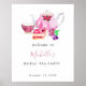 Joli affiche de bienvenue pour fête de mariage thème thé avec illustration de service à thé mignon. Si vous avez besoin d'aide avec l'un de mes designs, veuillez envoyer un message au designer, Kristine Lee, ici sur Zazzle. Conçu et illustré par Kristine Lee Designs www.kristineleedesigns.com