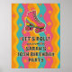 Préparez-vous à rouler ! Cette affiche vibrante de fête d'anniversaire de patinage à rouleaux rétro présente des vagues super en rose, orange, jaune et bleu turquoise, avec une illustration colorée de patinage à rouleaux arc-en-ciel et des accents de marguerite ludique. Personnalisez-le avec le nom et l'âge de votre enfant en caractères gras pour décorer et accueillir les invités dans le style. Parfait pour une fête à la patinoire pour les filles de tout âge qui aiment ce sport amusant !