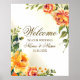 Affiche Bienvenue Mariage Orange Jaune Rouge Floral