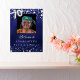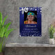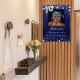 Une affiche de bienvenue pour une fête de 70e anniversaire. Un fond bleu marine avec des étoiles argentées élégantes. La couleur bleue est inégale. Personnalisez et ajoutez une photo, un nom et un texte. Lettres blanches.