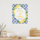 Cette pancarte de bienvenue amusante et fantaisiste présente des citrons d'agrumes aquarellés et du feuillage sur un fond de carreaux méditerranéens. Le texte combine une écriture manuscrite et des polices serif pour un look élégant et moderne. C'est parfait pour un anniversaire rustique d'été.
