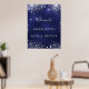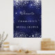 Un panneau de bienvenue pour une Baby Shower. Un fond bleu marine avec des paillettes argentées élégantes. La couleur bleue est inégale. Personnalisez et ajoutez un nom. Lettres blanches.