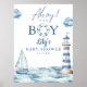Panneau de bienvenue pour une fête de bébé garçon sur le thème marin 'Ahoy c'est un garçon', personnalisé avec votre nom et date spéciale. Conçu par Thisisnotme©