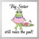 Les boîtes de conservation Big Sister, carreaux, ornements, carnets, lancer des oreillers, gel mousepads, postage, autocollants, et autres vêtements et cadeaux de grande soeur avec une grenouille fille et le pavé de lis et le texte qui dit "Big Sister toujours le pavé!". De grands cadeaux de frères et soeurs pour l'aîné sont quand le nouveau frère bébé ou la petite soeur arrive!