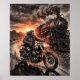 Affiche Biker Races Steam Train Desert Sunset Charcoal Art