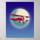 Vintage Red Biplane volant au-dessus d'une belle pleine lune.