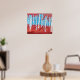 Peinture acrylique originale des bouleaux en automne avec des feuilles rouges vibrants imprimés sur papier.