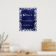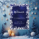 A welcome poster for a girly and glamorous 50th (or any age) birthday party. A navy blue background with a white frame of white snowflakes. The blue color is uneven. Personalize and add a name and age 21. White letters. Perfect for a winter party.