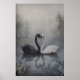 Black and White Swans in Misty Lake Dark Cottagecore Botanical Nature Art Romantic Gothic Wall Decor Dark Academia Printable Moody Landscape