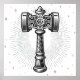 Black and white Thor's Hammer Mjolnir, Ancient hammer of Thor Mjolnir Vintage Norse Mythology Design Artwork, The hammer of the Scandinavian god Thor, Ornate Metal Hammer with a Wooden Handle