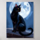 Black Cat | Full Moon Pet Painting Watercolor Poster