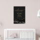 Cet élégant panneau d'accueil de mariage comporte une bordure inférieure de géode d'aquarelle noire avec des reflets de parties scintillant d'or. Le mot "Bienvenue" et le nom du couple apparaissent dans la police d'écriture moderne couleur or sur un arrière - plan non noir.