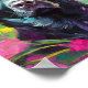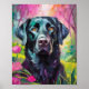 Portrait d'art moderne saisissant d'un laboratoire noir dressé contre un arrière - plan de jardin fleuri rose et vert abstrait. La silhouette foncée du chien contraste magnifiquement avec les couleurs vibrantes et tourbillonnantes du jardin, mêlant nature et animal dans un style expressif et contemporain. Les coups de pinceau abstraits créent un sens du mouvement et de l'énergie, ce qui rend cette pièce unique à la fois ludique et captivante visuellement.