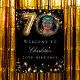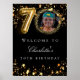 Une affiche de bienvenue pour une fête du 70e anniversaire. Black arrière - plan et étoiles de couleur faux or. Personnalisez et ajoutez un nom et une photo.