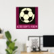 Cette affiche personnalisée de salle de bal de football noir, blanc, gris, marron et rose est idéale pour tout fan ou joueur de football (football européen).