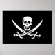Affiche Blanc, Drapeau Pirate Calico Jack, Crâne & Cutlass