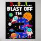 Affiche Blast Off I'm 3 Years Old 3rd Birthday Spaceship A