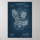Affiche de brevet pour moteur à combustion interne en bleu. Correspondance d'articles dans notre magasin.
