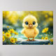 Affiche Bleu de poulet moelleux jaune soleil - Oiseau aux