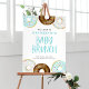 Bienvenue aux invités à votre événement avec ce panneau de bienvenue personnalisable pour le brunch bébé. Il présente des beignets bleu, blanc et chocolat avec des arrosages colorés. Personnalisez ceci en ajoutant vos détails. Ce signe de brunch pour bébé beignes est disponible en d'autres couleurs.