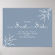 Cette affiche de mariage bleu poussiéreux choisissez un siège et non un camp est parfaite pour un mariage rustique. Le design présente des herbes sauvages aquarelles sur un fond bleu poussiéreux.