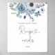 Affiche Bleu poussiéreux floral laissez votre carte de rec